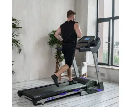 Мощность и диапазон: Оснащена двигателем постоянного тока мощностью 4 л.с., обеспечивающим плавный разгон и работу. Скорость регулируется с шагом 0.1 км/ч, а угол наклона полотна автоматически меняется до 22%.