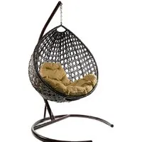 Подвесное кресло M-Group Капля Люкс 11030201 (коричневый ротанг/бежевая подушка)