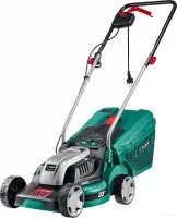 Объём травосборника: 35; Тип скашивания: сбор в травосборник; Уровень шума: 96; Ширина обработки: 33; Самоходная: нет; Возможность мульчирования: нет; Материал колесных дисков: пластик; Материал деки: пластик; Травосборник: жесткий; Количество колес: 4; Вес: 9; Комплектация: травосборник; Двигатель: электрический; Мощность двигателя: 1300; Мощность двигателя: 1.7