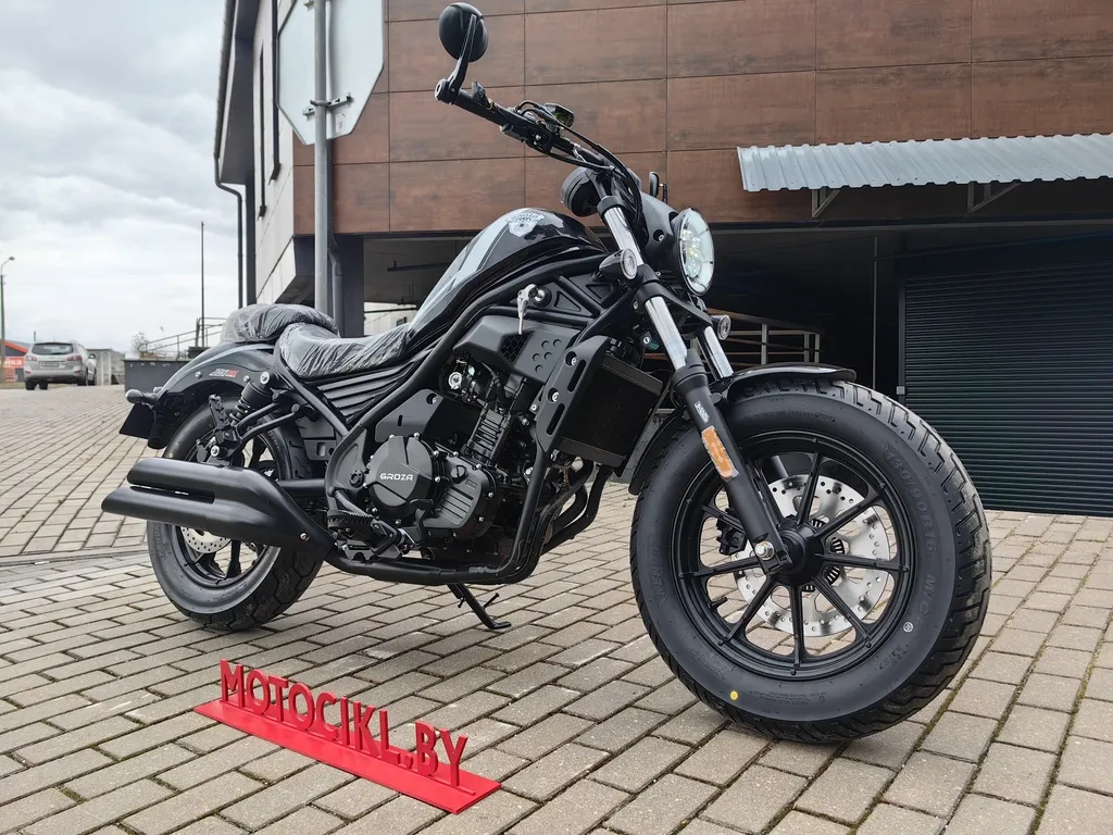 GROZA Joy300 Sport — стильный и элегантный круизёр с динамическим настроем. Этот мотоцикл сочетает в себе благородство классики и современные технологии, создавая образ достойного внимания. Круглая фара в ретро-стиле придает модели характерный олдскульный шарм, удачно сочетаемый с современными решениями. Чёрные матовые диски добавляют брутальности и подчёркивают массивность внешнего вида.