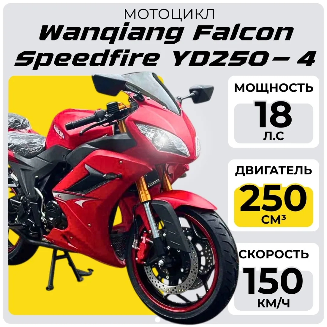 Wanqiang Falcon Speedfire YD250-4 - дерзкий, с характером гоночного байка и легкий в управлении. Внешний вид у мотоцикла очень привлекателен, что сразу бросается в глаза. Сочетания классического вида мотоцикла и спорт байка.
