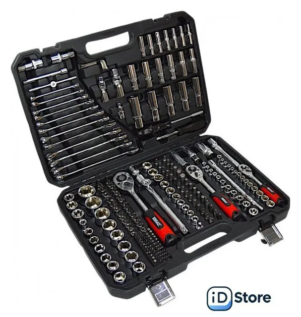 универсальный набор, 1/4", 3/8", 1/2", 216 предметов. Доставим по Минску в день заказа, при оформлении заявки до 14.00. Официальная гарантия.