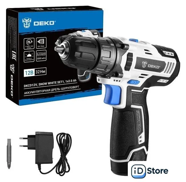 Дрель-шуруповерт Deko DKCD12V Snow White Set1 083-1106 (с 1-им АКБ)