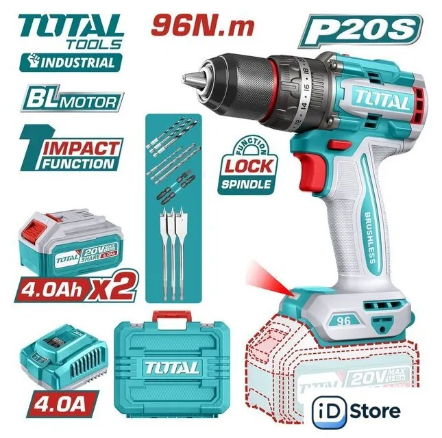 Ударная дрель-шуруповерт Total TIDLI20968 (с 2-мя АКБ, кейс)