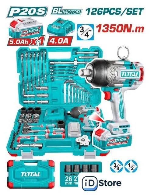 Гайковерт Total THKTHP31262 (с 1-им АКБ, кейс, набор инструментов)