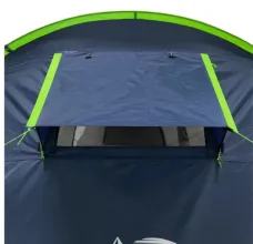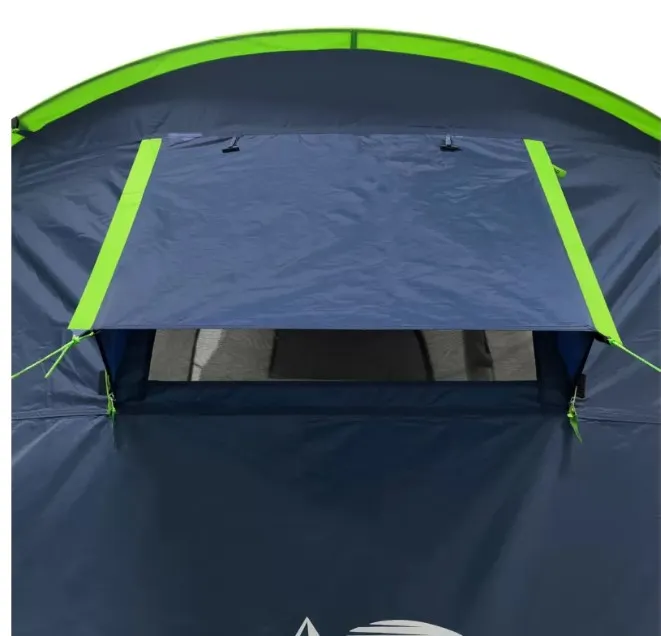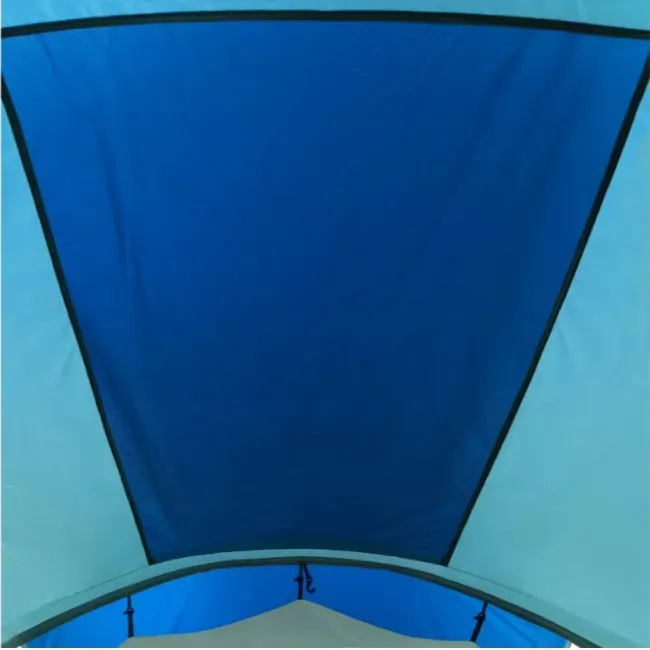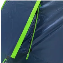 Тент выполнен из Polyester 210T 68D с водостойкостью 5000 мм — даже затяжной ливень не страшен. Днище — плотный Tarpauling с показателем водонепроницаемости 10 000 мм: лёгкий, эластичный, но при этом очень крепкий. Все швы и молнии проклеены термоусадочной лентой — вода не просочится ни в одном месте. Каркас собран из фиберглассовых дуг сечением 9,5 и 11 мм с металлическими наконечниками — гнутся, но не ломаются. Для дополнительной устойчивости на ветру есть штормовые оттяжки, прошитые светоотражающей нитью — ночью их хорошо видно и не запнёшься. Конструкция двухслойная: воздух свободно циркулирует между слоями, конденсат внутри не скапливается. Важный момент — первым ставится наружный тент, так что даже если начнёте сборку под дождём, спальные отсеки и вещи останутся сухими.