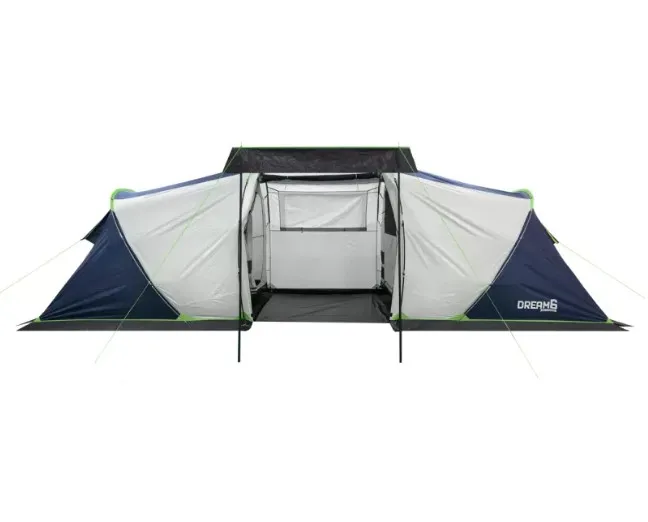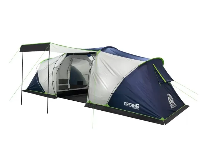 RSP Dream 6 — вместительная кемпинговая палатка, рассчитанная на шестерых. Отличный вариант для семейных вылазок или поездок с друзьями, когда хочется провести на природе не один день и при этом не жертвовать удобством. Между двумя спальными отсеками расположен широкий тамбур 160×230 см с высотой потолка 195 см — тут спокойно поместится походный стол со стульями, и ещё останется место под рюкзаки и снаряжение.