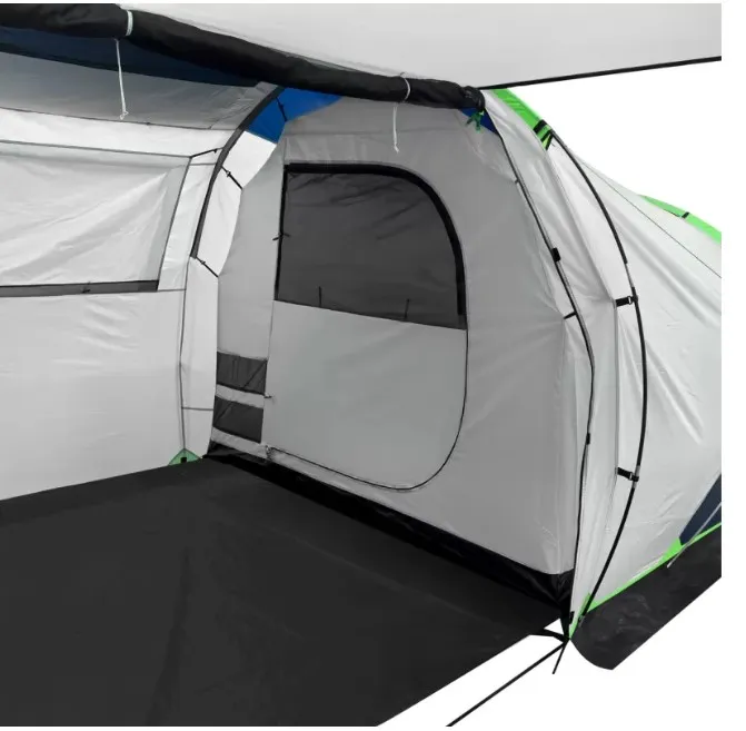 По всей палатке — и в тамбуре, и в спальнях — нашиты кармашки для мелочёвки: телефон, фонарик, очки — всё под рукой. Есть крючки, чтобы повесить светильник или фонарь. Молнии работают мягко, на бегунках — тканевые пуллеры салатового цвета. Их и нащупать в темноте легко, и дверь открывается одним движением.Бренд: RSP