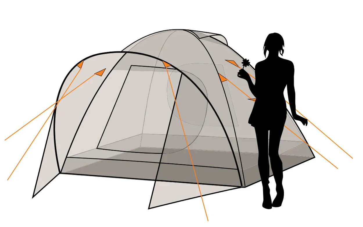 Главная особенность — увеличенный тамбур, который достигается за счёт дополнительной П-образной дуги. Это даёт больше пространства для хранения вещей и удобства при входе. Палатки оснащены двумя входами, окнами с противомоскитными сетками и вентиляционными отверстиями, что обеспечивает хорошую циркуляцию воздуха и защиту от насекомых. Ветрозащитная юбка по периметру повышает устойчивость к непогоде. Тент выполнен из водонепроницаемой ткани с огнеупорной пропиткой, все швы проклеены для надёжной защиты от дождя.
