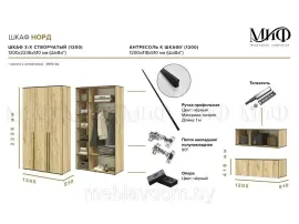 Шкаф трехдверный Норд 1200 (В×Ш×Г): 2236×1200×510 мм;