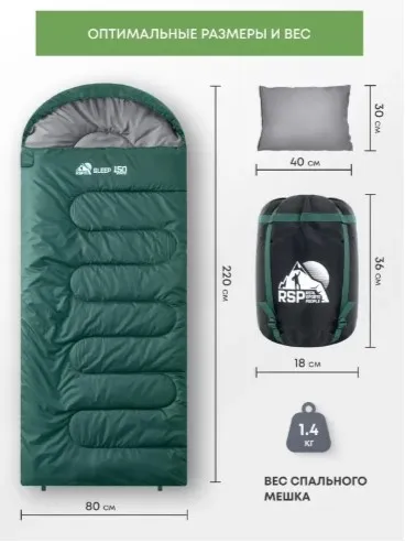 Спальный мешок RSP Sleep 150 L (зеленый, 22080см, молния слева)