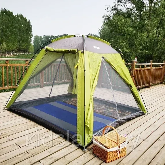 для отдыха, многогранная форма, каркас: стеклопластик, стенки, москитная сетка, цвет: зеленый/серый, 2.5x2.5 м. Возможны дополнительные скидки : при заказе комплекта из нескольких наименований, при повторной покупке в нашем магазине