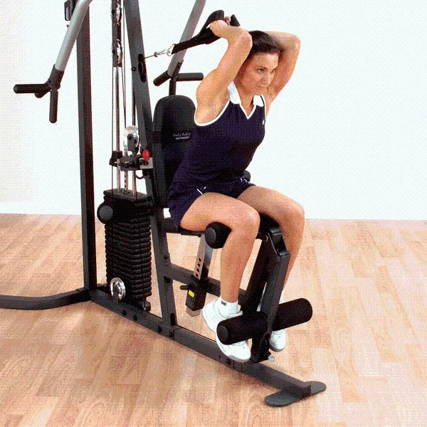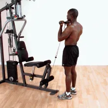 Многофункциональный тренажёр с одним весовым стеком (73 кг.). Улучшенная конструкция вместе с традиционной системой рычагов для жима с многопозиционными рукоятками обеспечивает глубокую и эффективную проработку мышц при жиме на грудь, жиме на грудь под углом, жиме на плечи и тяге к животу. Для работы над нижней частью спины просто встаньте перед тренажером и возьмите рукоятки тяги сидя. Тренажер для разгибания / сгибания ног полностью регулируется для достижения максимального комфорта. Для полной проработки нижней части тела имеется возможность добавления опционального тренажера для жима ногами / голенями. Основные преимущества: - Традиционный гриф для жима с многопозиционными рукоятками разработан с учетом биомеханики для достижения максимальной концентрации и выдающегося развития мышц груди, спины и трицепсов. - Уникальный комплекс упражнений включает в себя гиперэкстензии, жим стоя и тягу к животу с опорой грудью. - Стек с наборными грузами общим весом 73 кг., опционально наращивается до 95 кг. - Тренажер для ног включает в себя систему SmoothGlide Bearing System™ c биомеханически продуманным местом расположения шарнира. - Плотные высококачественные подушки DuraFirm™ с опорой для поясницы обеспечивают максимальный комфорт и предотвращают растяжения мышц нижней части спины. - Простая в использовании компактная конструкция не требует замены тросов при переходе к другому упражнению. - Высокопрочная рама из стали калибра 12 обеспечивает максимальную прочность и удобство пользования, а также длительный срок службы. - Стальные тросы с поворотными оконцовочными деталями, аналогичные применяющимся в военной авиации, выдерживающие до 2200 фунтов., обеспечивают долгий срок службы и не требуют объемного обслуживания. - Блоки размером 4½" изготовлены из ударопрочного нейлона, армированного фибергласом, и оснащены прецизионно обработанными шарикоподшипниками. - Прочное и долговечное порошковое покрытие, нанесенное электростатическим способом, обеспечивает защиту от царапин, сколов и отслаивания. В комплектацию входят: - вращающееся коромысло для широчайших мышц спины; - вращающийся прямой гриф; - ремень для тренировки голеней; - ремень для тренировки пресса / трицепса; - DVD-диск Total Body Workout™; - комплексные схемы упражнений; - держатель для бутылки с водой, полотенцедержатель. Дополнительные модули: Body Solid GLP – жим ногами (габариты 203*182*213 см); Body Solid GCCA – вертикальный тросовый модуль; Body Solid GIOT – сведение-разведение ног.Бренд: Body Solid