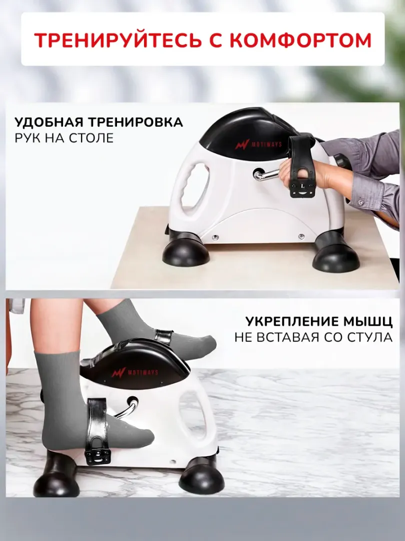 Мини велотренажер Motiways MC03 (белый с черным)